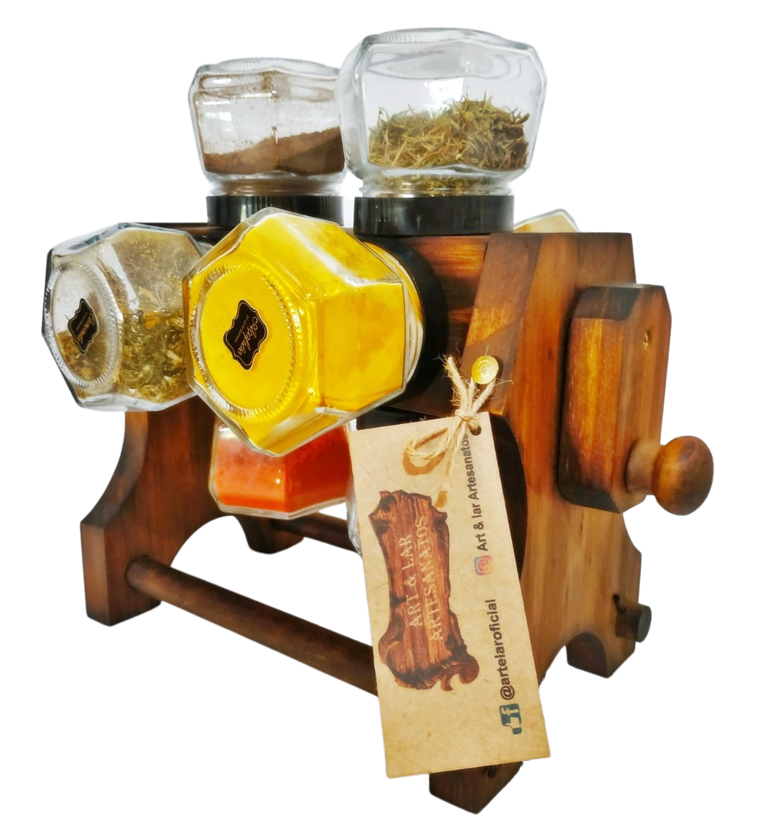 O Porta Temperos Art & Lar é um acessório de alta qualidade, deixando seus condimentos organizados e com fácil utilização. Além de ser uma bela decoração para a sua cozinha! Fabricado em madeiras tratadas, envernizado e encerado com ótimo acabamento.